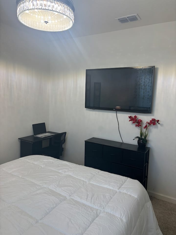 Una habitación solo para ti en un alojamiento, con acceso a áreas compartidas.