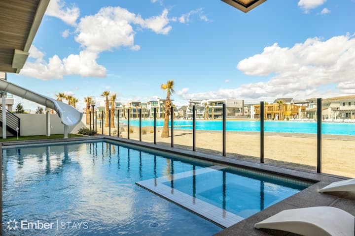 ¡Te damos la bienvenida a The Oasis Utah! Este nuevo alojamiento se encuentra directamente en la impresionante laguna de 2,5 acres en Desert Color e incluye: una piscina privada climatizada/fría con tobogán de agua de 2 pisos, jacuzzi, cine completo, cancha de baloncesto, inmersión en frío, sala de entrenamiento y casa de juegos para niños de 3 pisos. La propiedad también cuenta con todos los servicios y detalles de lujo que esperarías de Ember Stays: una cocina gourmet totalmente surtida, enormes espacios de comedor y reunión, y dormitorios en suite para mayor privacidad y comodidad.