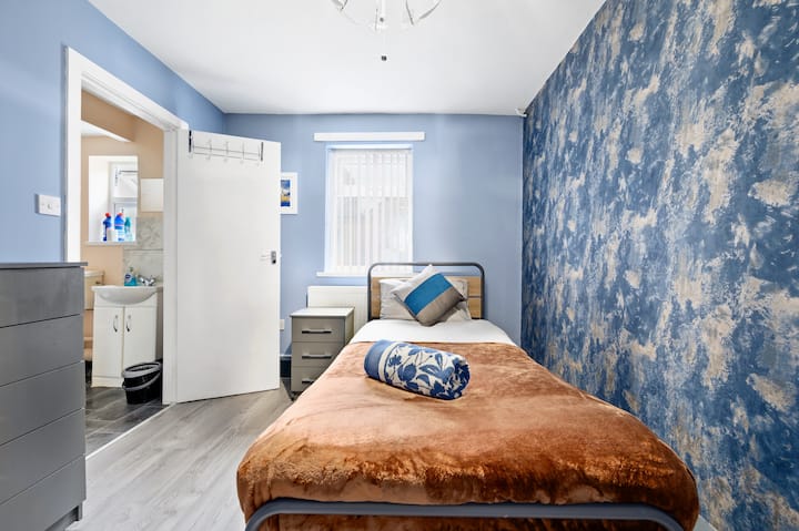 Habitación con baño azul de zafiro cerca de CityCenter/Etihad