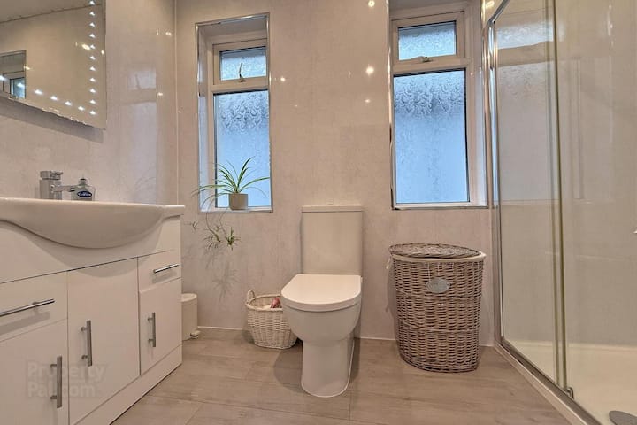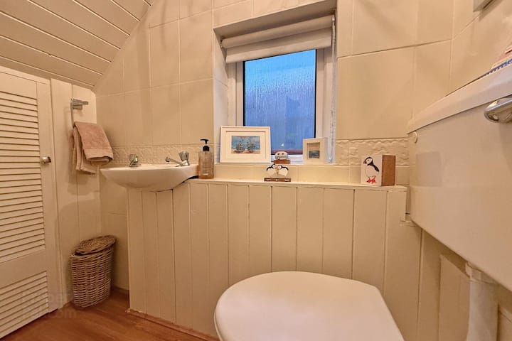 Estufa multicombustible en chimenea de pizarra; suelo laminado; puertas de patio en la parte trasera. TV de 55 pulgadas con Sky TV, Netflix y router WIFI para acceso complementario durante toda la estancia. El código WIFI se puede encontrar en la parte delantera de la caja de Sky TV.