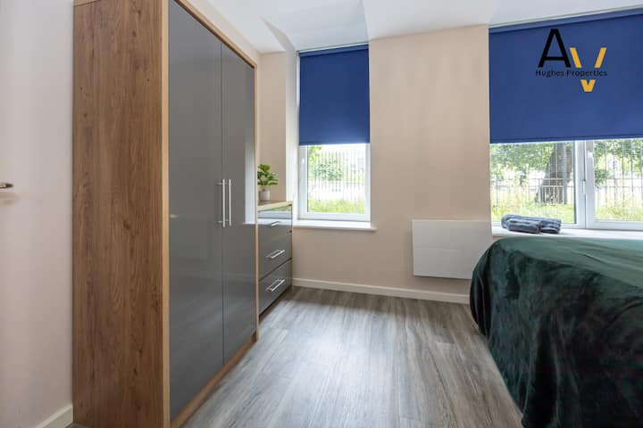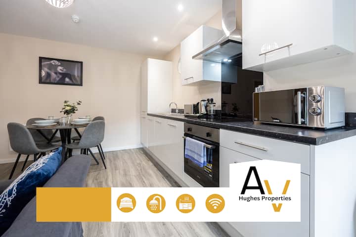 Apartamento de 1 dormitorio en Salford|Estacionamiento + Wifi rápido |Tranvía a 5 minutos