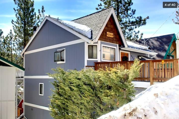 Ya sea que estés buscando una escapada romántica para dos, un descanso divertido con amigos y familiares o un lugar tranquilo para volver a conectar, esta cabaña lo tiene todo. Disfruta de las vistas de las montañas de esquí de Ski y Bear Mountain desde nuestro balcón rodeado de pinos. Nuestro adorable patio trasero está cerrado con una valla alta y un acogedor spa. ¡El chalet está cerca de todo! A cinco minutos de Big Bear Village y a 5 minutos de Bear Mountain y Snow Summit. La verdad es que si te quedas aquí... ¡te va a encantar!