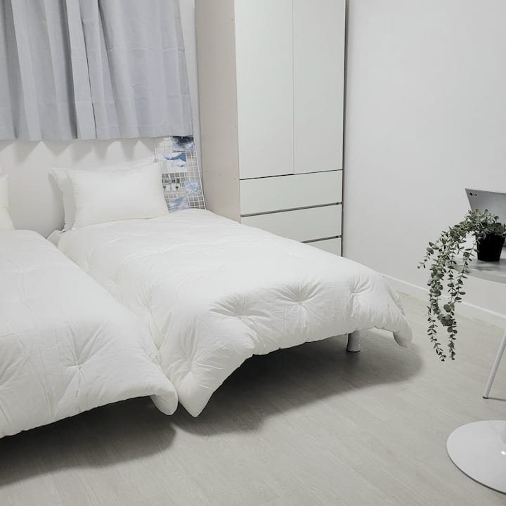 [Descuento por estancia larga] Descanso cómodo/2 camas Baño privado dentro del dormitorio/lavandería