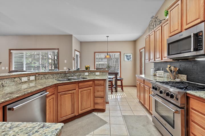 ¡Nuestra casa de 4 dormitorios y 3 baños cuenta con todo lo necesario para una escapada ideal a Coeur d'Alene! Cocina una deliciosa comida en la terraza trasera privada mientras juegas juegos de patio, acurrúcate con una fogata o dirígete al centro de CDA (a 8 millas de distancia)