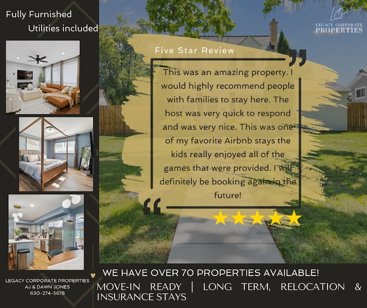 Legacy Corporate Properties ofrece departamentos y casas totalmente amueblados, asequibles y convenientes para la mudanza. Nuestros alojamientos están completos con muebles, artículos para el hogar, sábanas, electrodomésticos, tecnología y todos los servicios incluidos en nuestras tarifas diarias bajas. Nos hemos ganado la confianza de reubicar a las familias, las empresas de la lista Fortune 500 y los profesionales que viajan a través de nuestro servicio superior, el personal local y la voluntad de ir más allá.