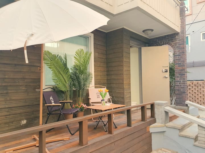 - Renta de alojamientos vacacionales con área de asientos al aire libre en Corea del Sur
