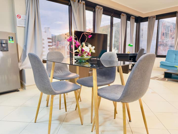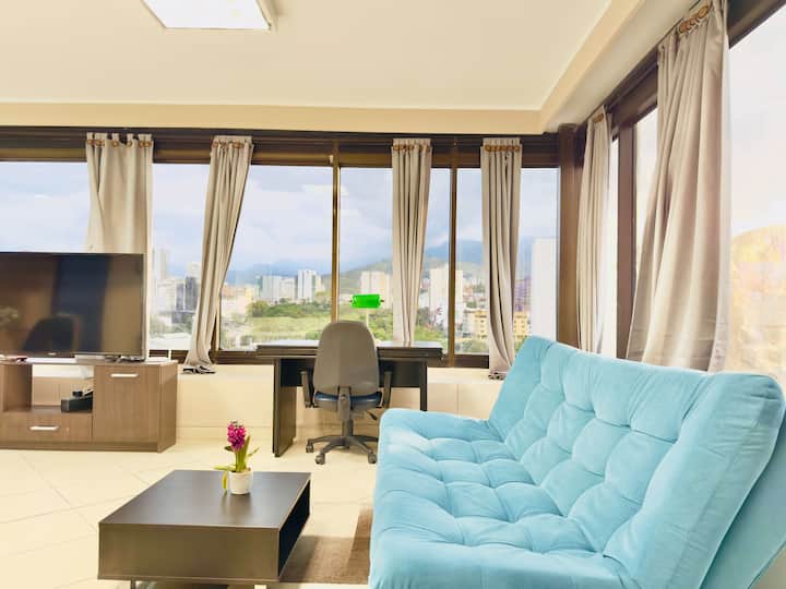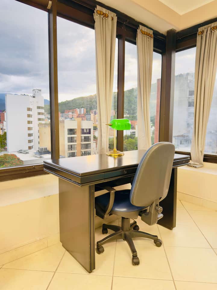 Vistas a: a la montaña y a la ciudad