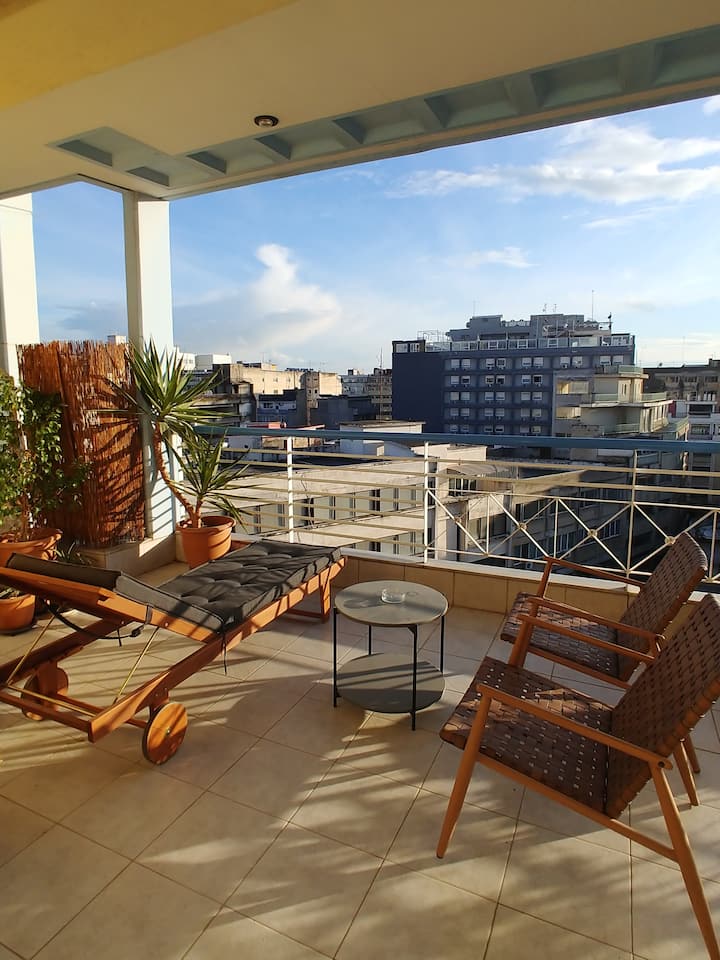 - Renta de alojamientos vacacionales con área de asientos al aire libre en Salónica
