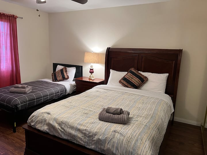 1 cama queen size, 1 cama individual