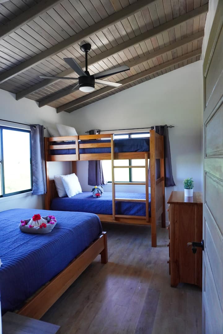 ♛ Dormitorio 2: cama tamaño queen + litera (individual sobre individual)
