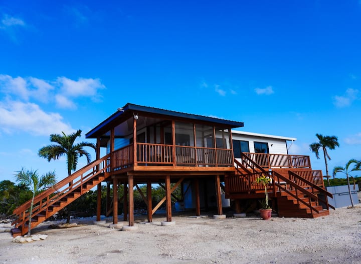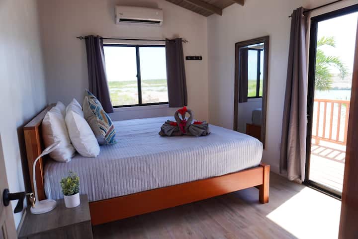 Entra en la lujosa y luminosa escapada frente a la laguna de 2 dormitorios y 1 baño en Cayo Ambergris, a 25 minutos del bullicioso San Pedro. Promete un refugio relajante a solo 2 minutos en carrito de golf de la icónica Secret Beach, restaurantes y bares de playa.