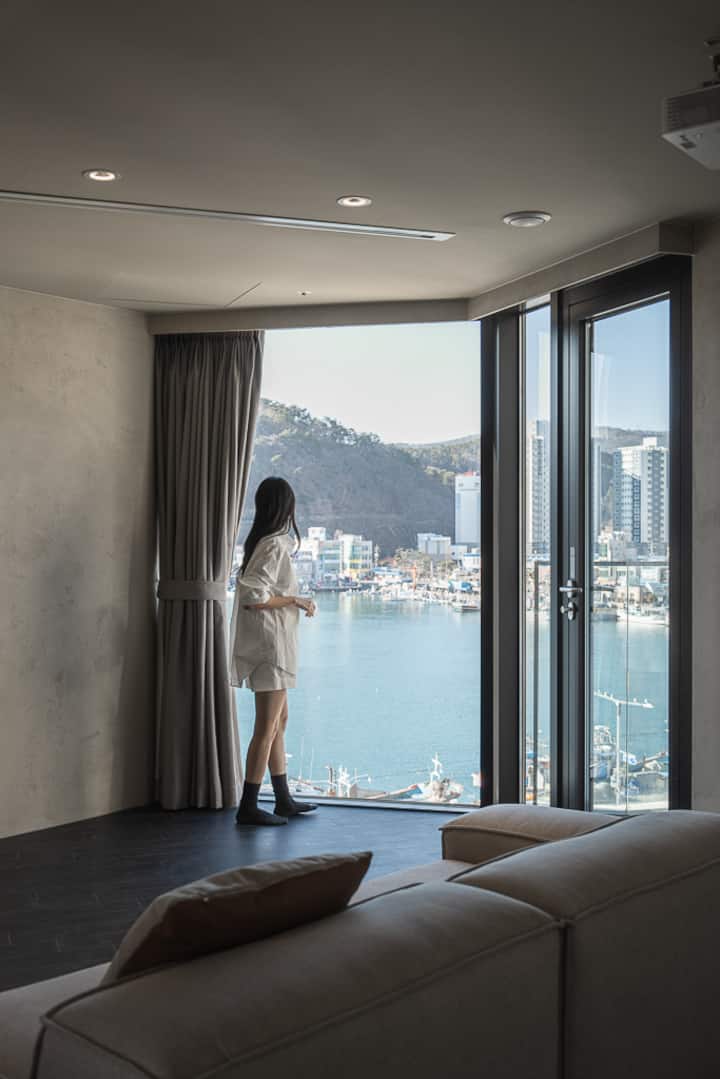 Con vistas al mar en todas las habitaciones, puedes disfrutar de la puesta de sol rosa que se vuelve roja con el mar de Gijang en la habitación. Tenemos una variedad de habitaciones, desde parejas hasta familias de 8, hasta reuniones.