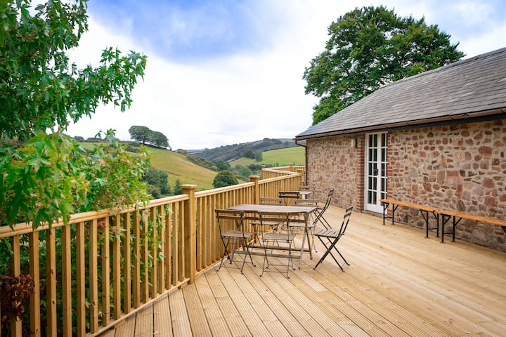 Nuestras casas de campo se encuentran en la cabecera del valle de Quarme con impresionantes vistas al sur de la campiña de Exmoor. Tendrás muchas opciones con un montón de hermosos paseos locales por bosques, páramos abiertos y campos. Las vistas desde Dunkery Beacon (el punto más alto de Exmoor y a pocos kilómetros a pie o en coche de Little Quarme) se extienden hasta Dartmoor en el sur, Hinkley Point en el este e incluso los Brecon Beacons en Gales en un día muy claro.