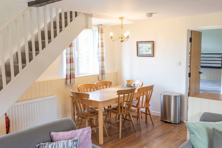 Quarme Cottage tiene capacidad para 6 personas, idealmente 4 adultos o una familia de 5/6, con un dormitorio doble, un dormitorio con dos camas individuales y un dormitorio en la planta baja con literas. Hay mucho estacionamiento gratuito y un soporte de cargadores de vehículos eléctricos.