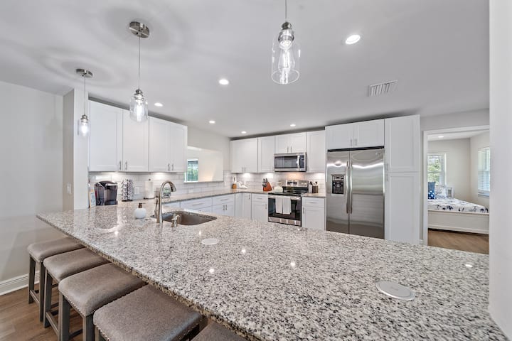 • Cocina totalmente abastecida con utensilios de cocina, vajilla y opciones de café completamente nuevos.