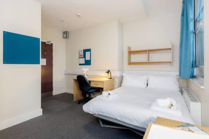 Todas nuestras habitaciones están equipadas con una cama doble o individual, armario con espejo de cuerpo entero, escritorio y silla y nevera pequeña. Proporcionamos agua embotellada de cortesía, toallas y artículos de tocador básicos. Se proporcionan secadores de pelo en nuestras habitaciones dobles y están disponibles bajo petición para habitaciones individuales. Ten en cuenta que las instalaciones no tienen aire acondicionado, pero tenemos disponible un suministro de ventiladores de escritorio.