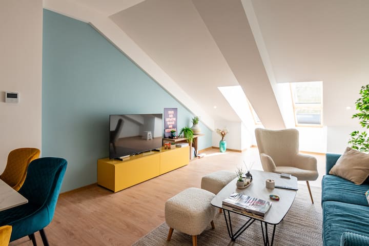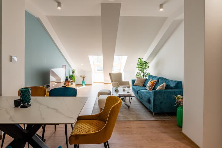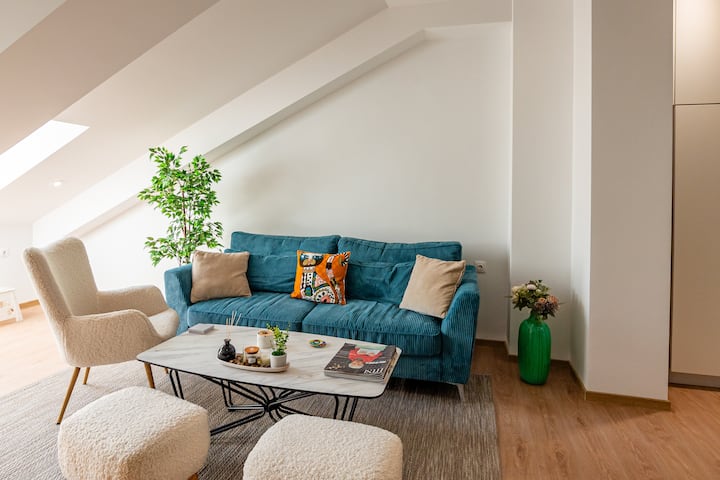 Piso luminoso en el piso superior cerca del centro de la ciudad