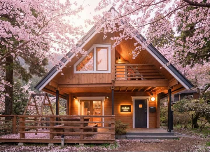 ¡Puedes disfrutar de una cabaña de nueva construcción con aguas termales naturales en un lugar natural en la zona de Motohakone (Hakonejiri)!Disfruta de la calidez del bosque, las aguas termales cálidas, la cama esponjosa, la alarma con el canto de los pájaros... ¡con tus cinco sentidos!