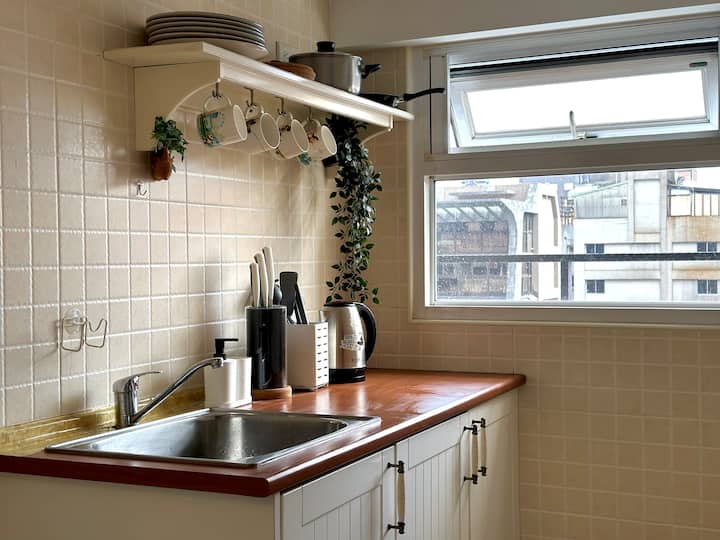 Además de sus ventajas geográficas, la habitación tiene iluminación brillante y espacios recién renovados, aire acondicionado separado, baños separados, inodoros, lavadora y secadora, refrigerador, wifi gratuito, hervidor de agua rápido, TV, una cómoda cama tamaño queen doble y un cómodo sofá cama, así como utensilios de cocina para cocinar sin humo, lo que lo convierte en una excelente opción para viajes de negocios.Eres más que bienvenido a hacer el check-in ~ ~