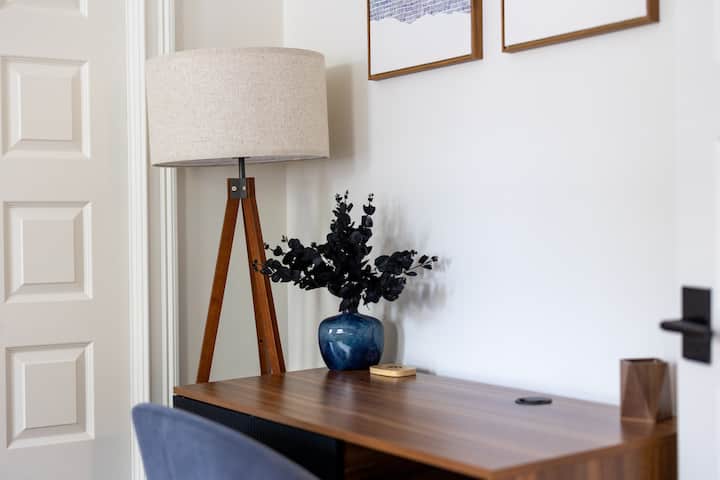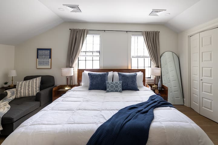 Amplia y elegante casa de 6 dormitorios y 3 baños en el corazón de Providence, perfecta para familias, grupos o estancias prolongadas. Disfruta de una cocina totalmente equipada, un gran comedor y sala de estar, y lavandería en el lugar. Cada dormitorio tiene un diseño único con una decoración natural, espacios de trabajo y mucha luz. Wifi de alta velocidad, entrada sin llave y muy cerca del centro de la ciudad, universidades y atracciones locales incluidas.