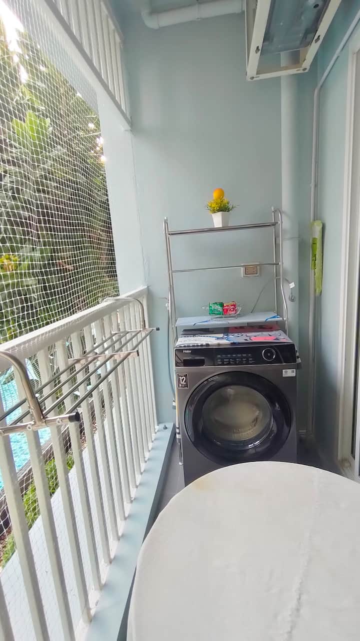 Armario de TV incorporado para muebles + sofá cama, sofá cama, sofá cama, mesa de comedor + 2 sillas, encimera de cocina + armario de almacenamiento + armario empotrado en el entrepiso con espejo + taburete, cama con colchón de 5 pies + 2 juegos de ropa de cama, 2 mesitas de noche, cortinas, rieles de pantalla resistentes a los rayos UV en la sala de estar y el dormitorio, mesa redonda, balcón de la sala de estar + 2 sillas * * ElectrodomésticosAller-CondiciónFrutador de aguaFuertas de agua, lavavajillas y hervidor eléctricoLámparas de secado con secador de pelo * * Otros artículos como platos, cubiertos, cubiertos, tazas de café, tazas de agua, toallas, tazas de agua, toallitas, jarra, florero, secadora, balcón, cesta para ropa * * Instalaciones: • Lobby • Piscina con sistema de sal, 1,200 sq.m. • Casa club con gimnasio y equipo moderno • Jardín • Llave de seguridad • Estacionamiento gratuito • Sistema de CCTV y guardia de seguridad las 24 horas alrededor del proyecto