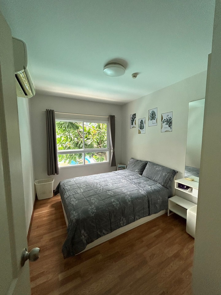 Nueva habitación amueblada con acceso inmediato. Muebles y electrodomésticos gratuitos. Tarifa común gratuita (1 año). A solo 200 metros cerca del mar. Cerca de atracciones turísticas con instalaciones completas - Habitación B221 o 53/255 (edificio de delfines) de 33 metros cuadrados. 1 dormitorio, 1 baño, segundo piso, vista a la piscina, estacionamiento junto al edificio * * Muebles, gabinete, TV incorporada + entrepiso, sofá cama, sofá cama, mesa de comedor + 2 sillas, encimera de cocina + fregadero + armario + piso del entresuelo, tocador incorporado con espejo + taburete con colchón de 5 pies. + 2 juegos de ropa de cama, 2 mesitas de noche, cortinas, protección UV en la sala de estar y el dormitorio, mesa redonda, sala de estar en el balcón + 2 sillas * * electrodomésticos, aire acondicionado, nevera, TV, calentador de agua, microondas, tostadora y hervidor eléctrico, secador de pelo, lámpara de pie, ventilador * * Otros electrodomésticos como platos, cubiertos, tazas, tazas, vasos de agua, toallas de baño, botes de basura, jarrones, recipientes de flores en el balcón, bastidores de ropa. * * Instalaciones: • Vestíbulo • Piscina. Agua salada de 1200 metros cuadrados • Casa club con fitness y equipo moderno • Jardín • Sistema de seguridad, tarjeta de acceso, puerta al proyecto y acceso interior • Estacionamiento gratuito • Sistema de CCTV y guardia de seguridad alrededor del proyecto las 24 horas del día. * * Cerca: • Flynow Outlet • The Venezia • Plearnwan • Market Village • Hua Hin Makro Market, Water Park, Palace, Far Concern