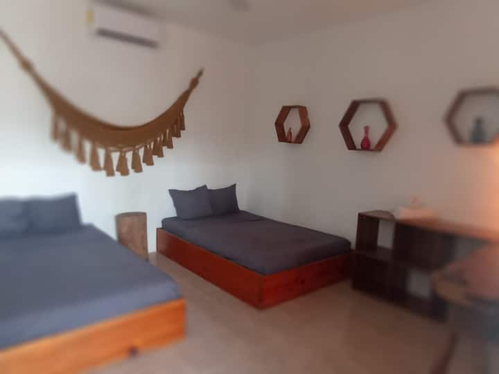 Ubicada en el vibrante centro de Tulum, nuestra acogedora habitación es perfecta para aquellos que buscan una estancia prolongada. Disfruta de la verdadera experiencia local mientras exploras los encantos de esta ciudad mágica.