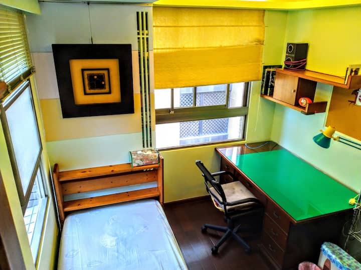 Una habitación solo para ti en un alojamiento, con acceso a áreas compartidas.