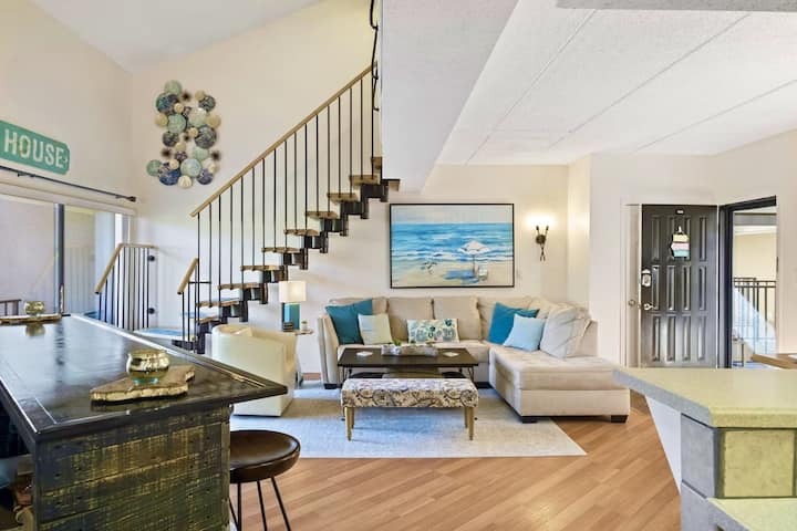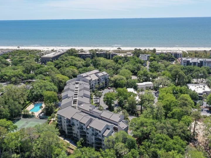 Nuestro espacioso condominio ático de dos pisos con vista a la laguna está enfrente de la playa, a una cuadra de las tiendas/restaurantes de Coligny Plaza y junto al Lowcountry Celebration Park. El área de Coligny ofrece la mejor combinación de una hermosa playa y la capacidad de caminar a tiendas, restaurantes y bares de playa. El complejo cuenta con estacionamiento en garaje, ascensores, piscina y canchas de tenis/pickleball. ¡El condominio cuenta con un balcón, 5 bicicletas, raquetas de tenis/pickleball, juegos y todas las comodidades de la piscina y la playa que necesitas!