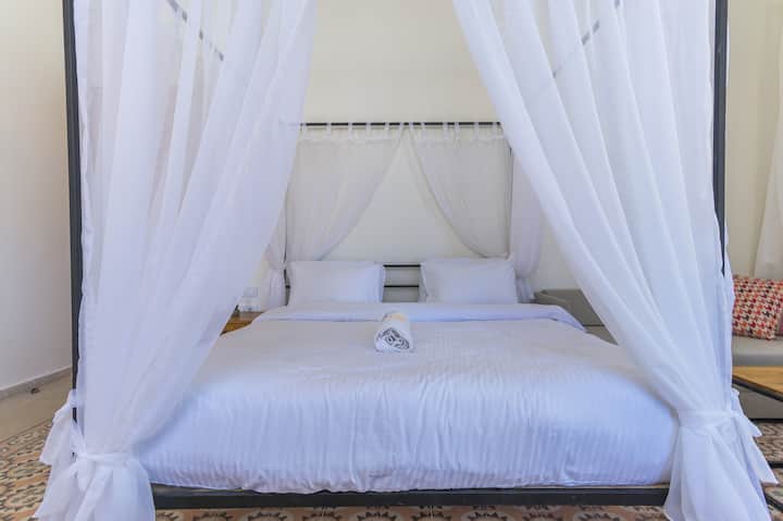 La suite más lujosa de Les Bougainvilliers, Corail cuenta con una terraza privada🌅, un lujo poco común en el centro histórico de Batroun. Ya sea que estés celebrando o simplemente mimándote, esta suite ofrece paz, privacidad y elegancia en cada rincón. Es la opción perfecta para lunas de miel, aniversarios o cualquier persona que desee lo mejor de la comodidad costera.