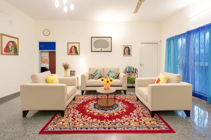 • Barrio residencial: este bungalow está en una tranquila zona residencial en Yelahanka. Solicitamos a los huéspedes que respeten el horario de silencio de 22:00 a 7:00 y mantengan un ambiente tranquilo.