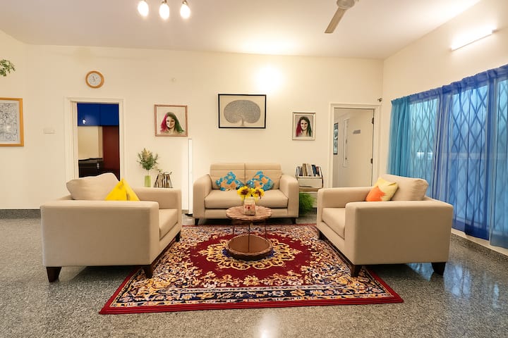 Bienvenido a tu serena escapada en Yelahanka, Bangalore, un espacioso y privado bungalow de 3 dormitorios ideal para familias, grupos o trabajadores remotos que buscan comodidad y tranquilidad en un vecindario bien conectado o familias que se mudan a Bangalore y necesitan estadías cortas.