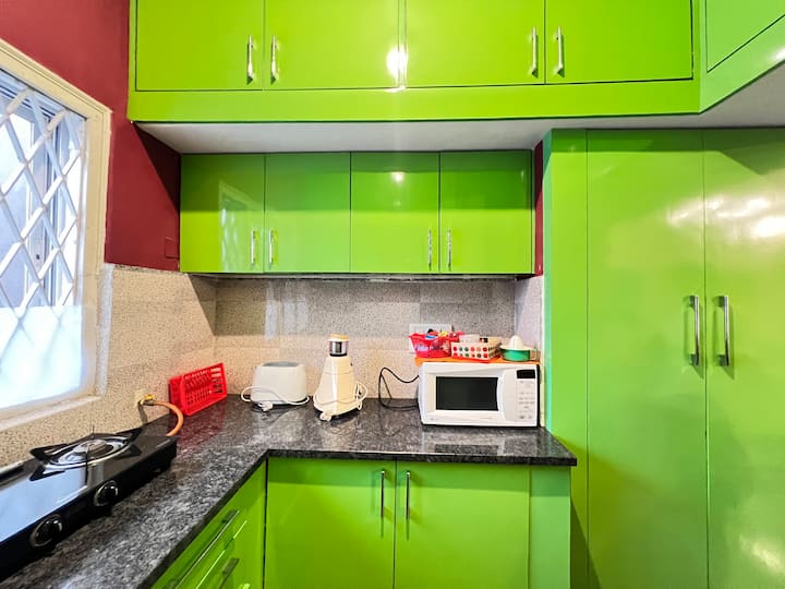 Bienvenido a nuestra acogedora casa independiente en Yelahanka, ubicada en una zona residencial tranquila a poca distancia en coche del Aeropuerto Internacional Kempegowda, perfecta para viajeros que buscan comodidad y confort. Ideal para tomar un vuelo nocturno, familias que desean entrenar en el centro deportivo de Padukone o pasear en la embajada, mudarse a Bangalore y necesitar una estadía de 2 a 6 meses para establecerse mientras buscan su propia casa o simplemente relajarse.