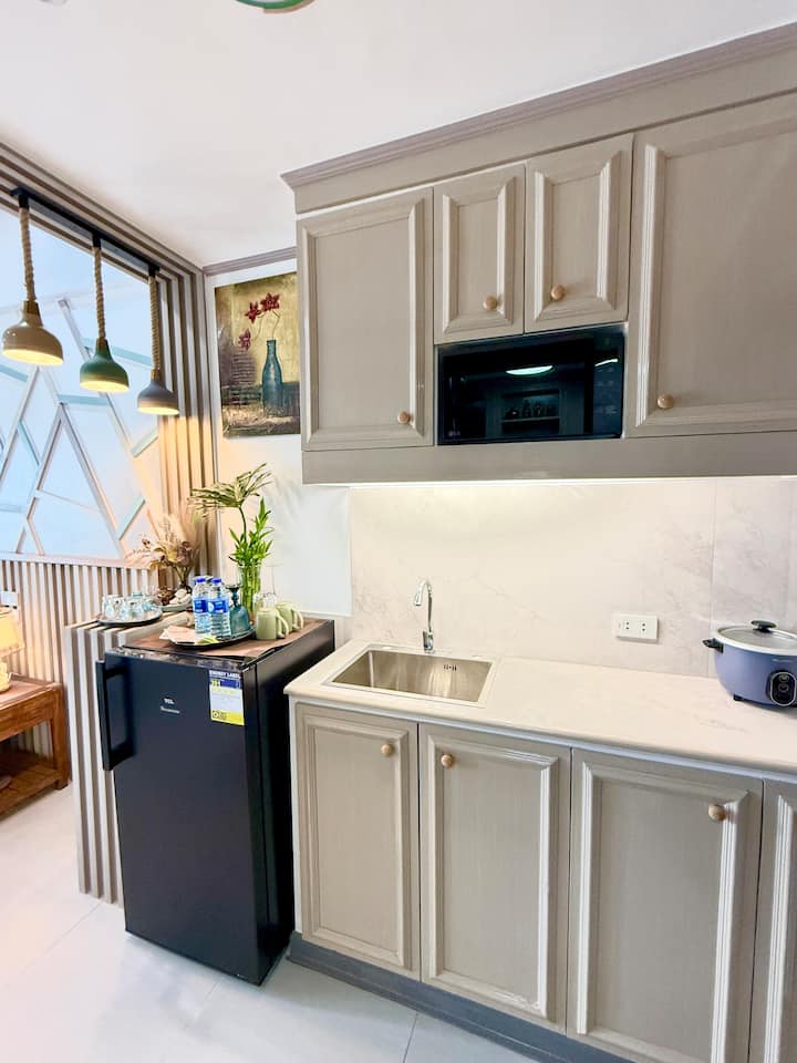 Ten en cuenta que no se permite cocinar debido a la falta de escape. Sin embargo, se proporcionan una olla arrocera, hervidor de agua y microondas para tu comodidad. Gracias por tu comprensión.