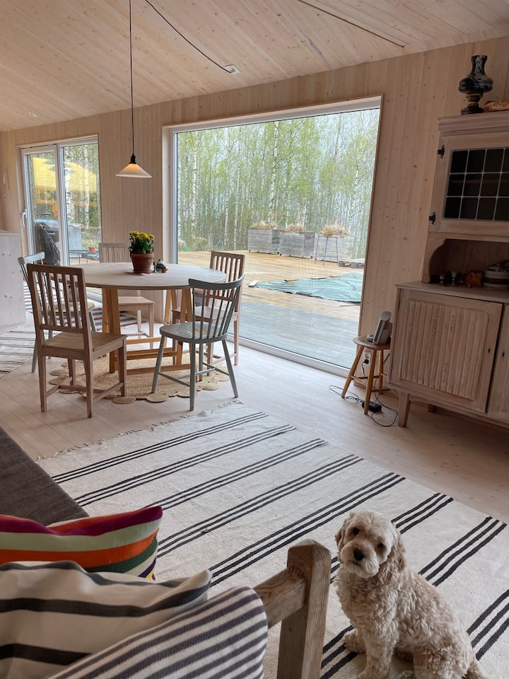 Cabaña en la naturaleza, cerca de Vättern, con piscina