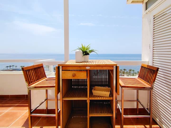 Oliveros Playa Suites, terraza con vistas al mar