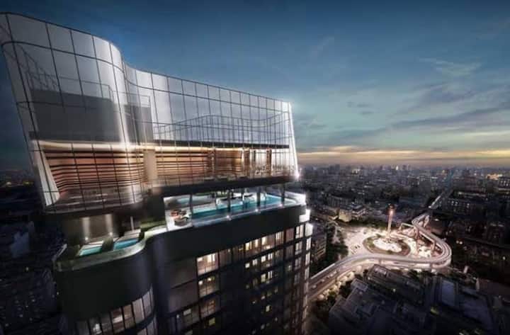 Gimnasio con piscina de lujo en azotea + a 5 segundos a pie de la estación de tren ligero, del distrito comercial de Siam Mall/tienda libre de impuestos Wangquan
