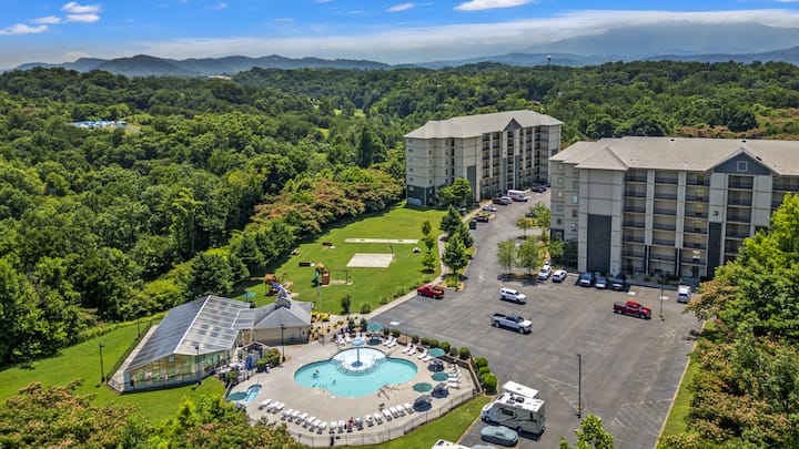 Condominio con vista a Smoky: piscina cubierta, parque infantil, juegos