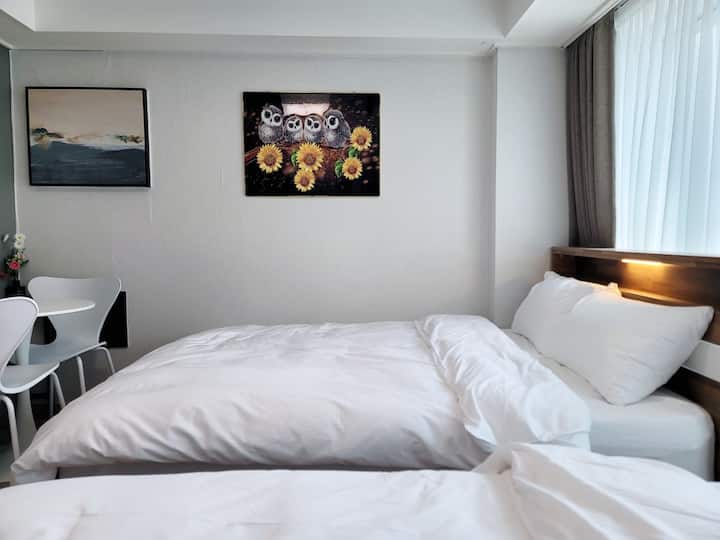 8346. <Sokcho Marina Hotel> _2 camas queen_ piscina al aire libre_4 personas_descuento por estadía prolongada_posibilidad de cocina_10 minutos de la playa de Sokcho