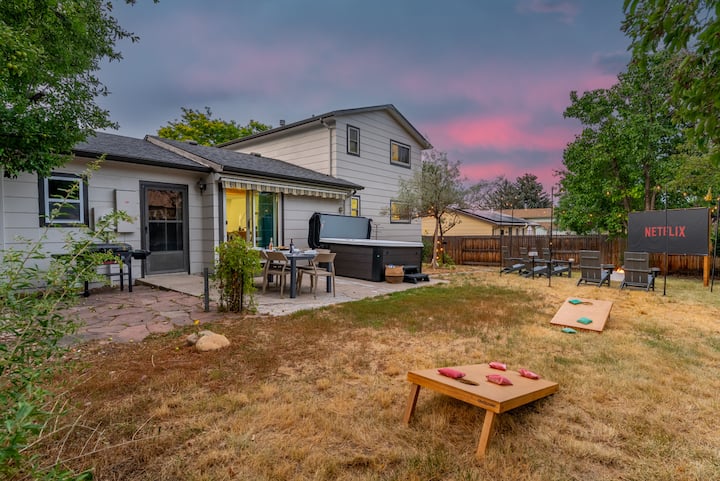 Jacuzzi • Patio enorme • Películas al aire libre • Sala de juegos