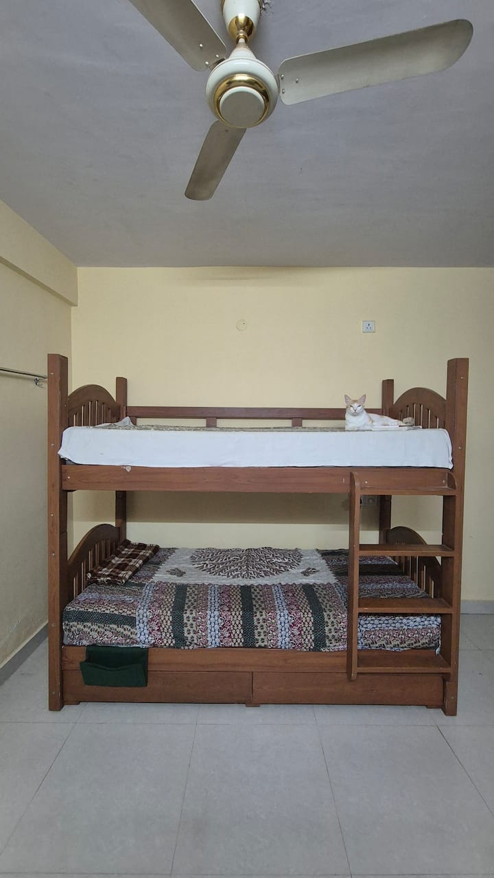 Una habitación solo para ti en un alojamiento, con acceso a áreas compartidas.