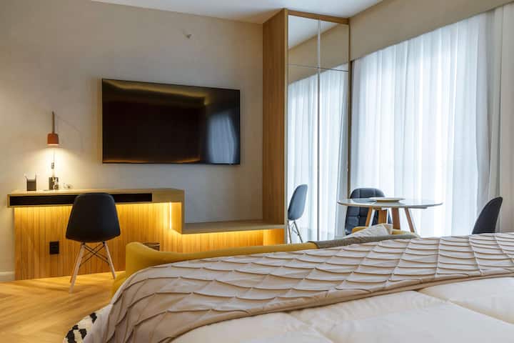 Bem-vinde à Cyclinn! Nos apasionan los viajes y dedicamos nuestros esfuerzos a ofrecer experiencias increíbles. ¿Necesitas un lugar cerca de un evento, trabajo o restaurante favorito? ¡Tenemos! Nuestras unidades están decoradas de forma única, modernas y bien ubicadas, con Wi-Fi, TV de 65 pulgadas, ropa de cama de primera calidad, piscina, gimnasio y mucho más. Ya sea por trabajo o por placer, ¡tenemos el espacio perfecto para que tu estancia sea inolvidable!