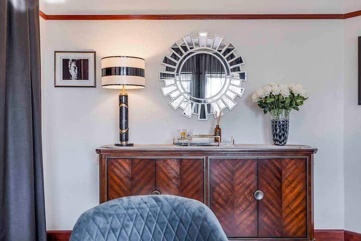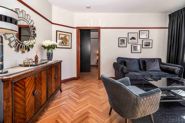 • Interiores seleccionados: acabados de primera calidad, pisos de madera de parqué, muebles a medida y una paleta de art déco moderna y tranquila
