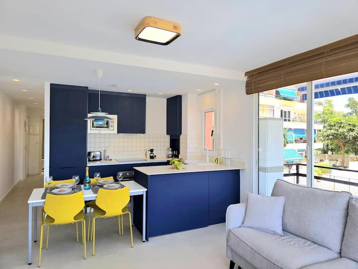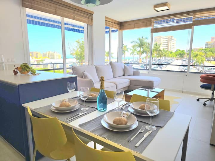 Apartamento de 2 dormitorios con vista al mar y cielo azul soleado