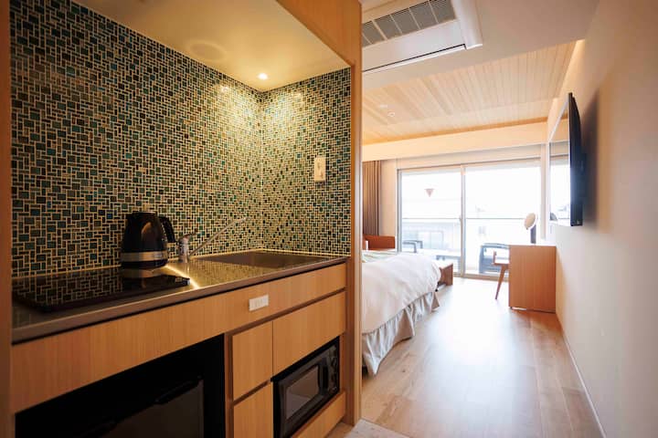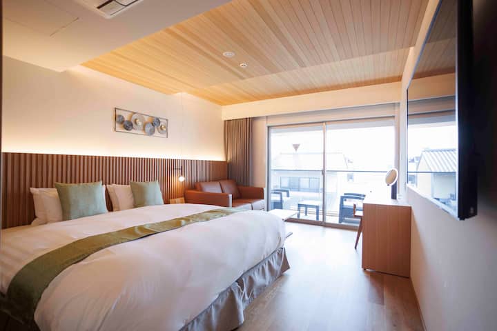 Amplia habitación tamaño king con balcón, centro de Gion