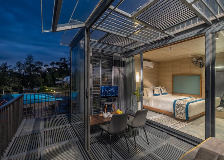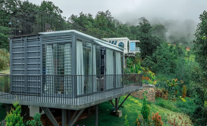 La mezcla perfecta de lujo y comodidad, alójate en nuestras casas contenedor con una vista inmejorable a la montaña cerca de Munnar. Ubicado en un hermoso valle de montaña que se extiende a lo largo de 3,5 acres de terreno con muchos árboles y vegetación lejos de la multitud y la ciudad