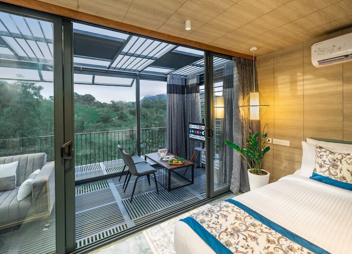 Observaciones : *El nuestro es un complejo turístico repartido en 3,5 acres de terreno con más opciones de alojamiento especializadas como cúpulas, tiendas de campaña, casas de contenedores, etc. en la misma propiedad. Cada opción de alojamiento está cuidadosamente diseñada para ofrecerte privacidad, comodidad y una conexión profunda con los alrededores de la montaña y las plantaciones de cardamomo. Sube a tu balcón privado y deja que la brisa fragante y las vistas panorámicas de los campos de cardamomo envuelvan tus sentidos.