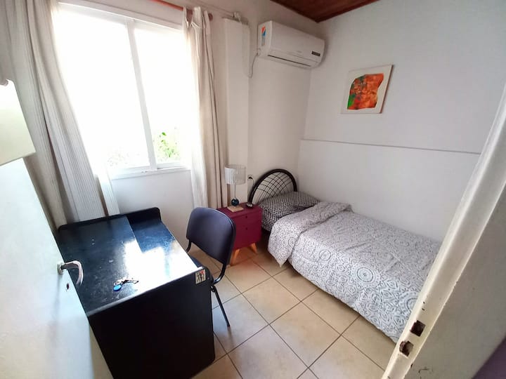 Una habitación solo para ti en un alojamiento, con acceso a áreas compartidas.