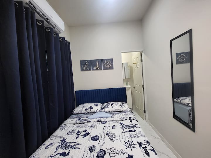 Dormitorio y baño privado muy pequeño Miami E1