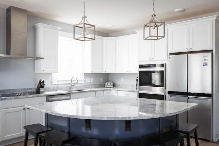 ✔ Gran mesa de comedor con capacidad para 7 personas, +6 asientos adicionales en la isla de la barra.